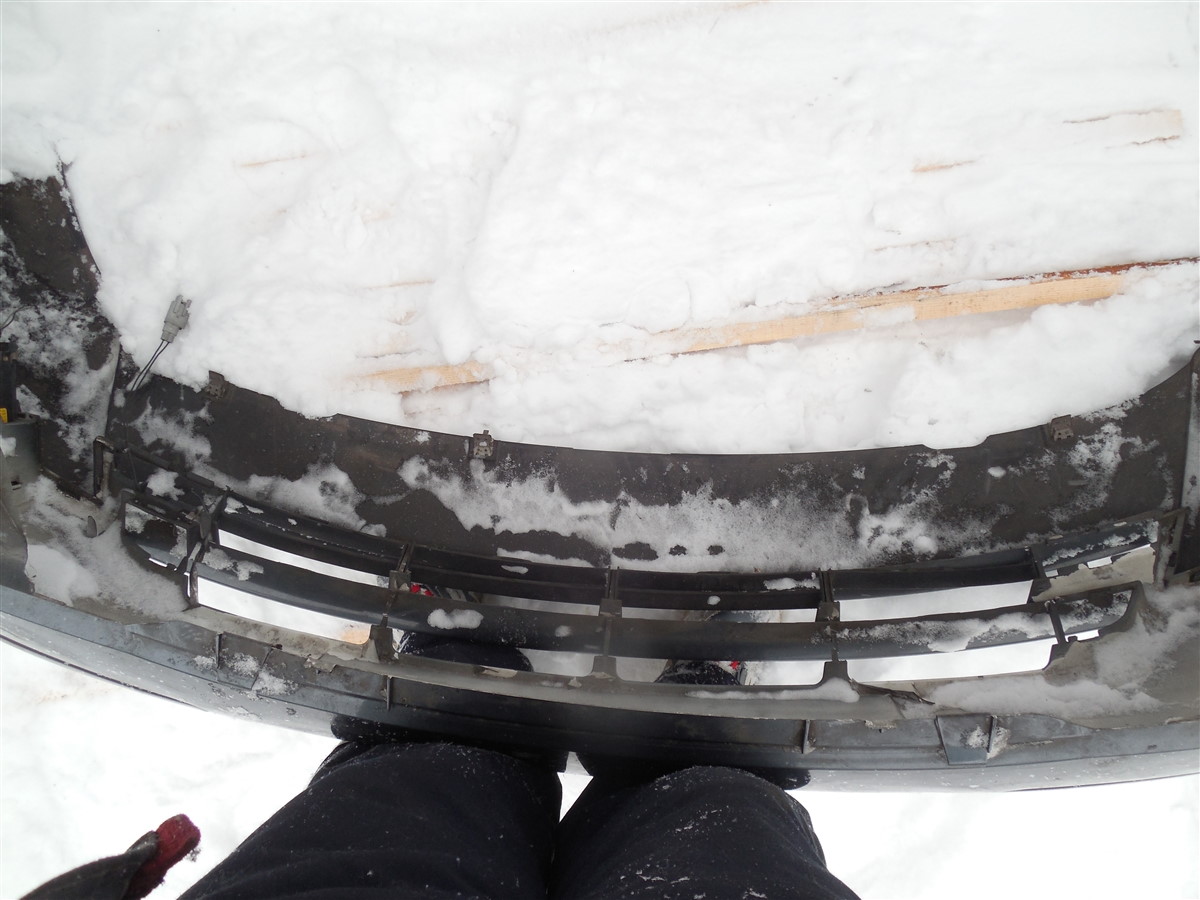 отличное состояние. крепления целы. с губой в сборе как на фото. трещинка за туманкой.